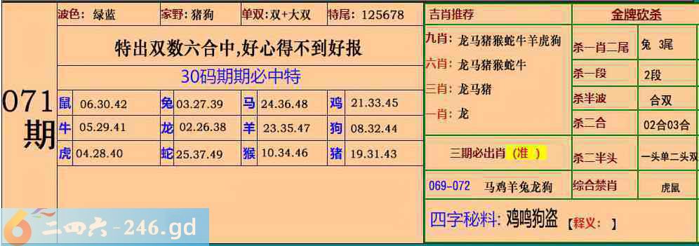 071期:30码期期必中特