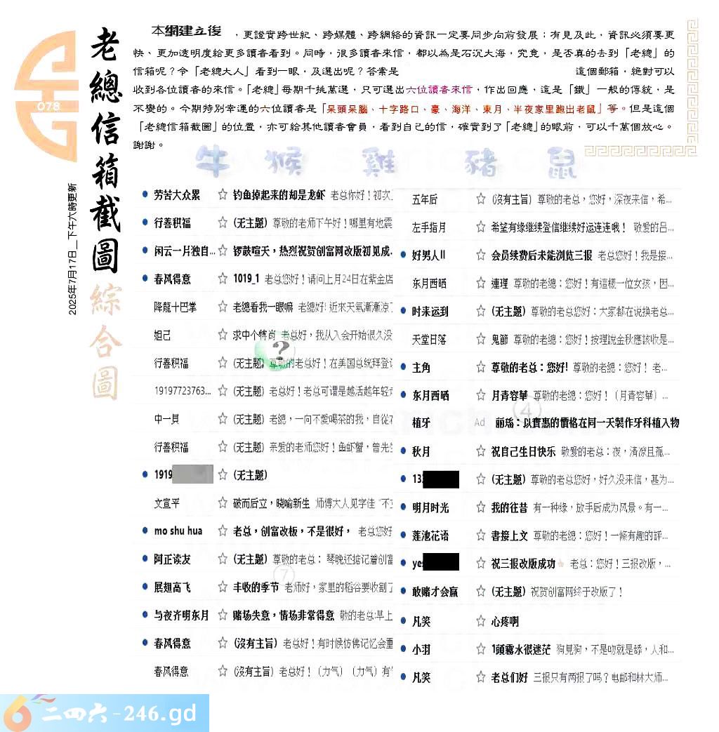 078期:六合皇金句/老总论码/萧公子/林大师/五行夺码/老总信箱截图