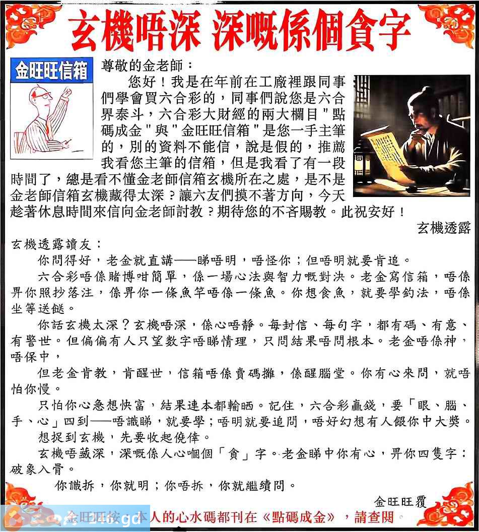 2025092期092期:金旺旺信箱彩民推荐→→《玄機唔深 深嘅係個貪字》