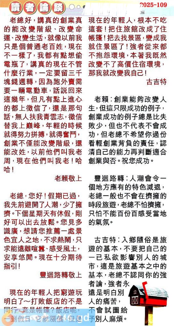 第一零九期讀者論談