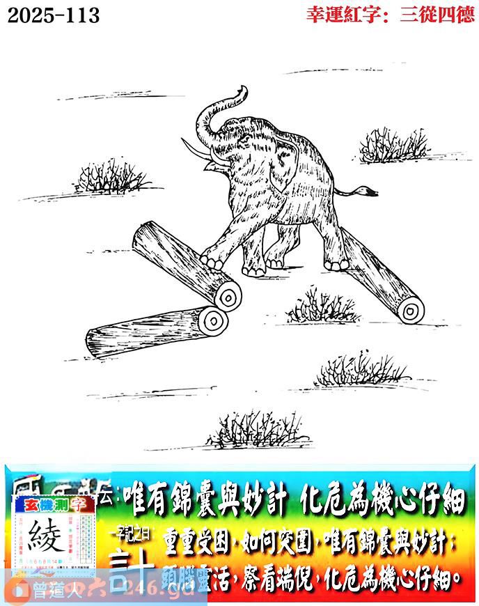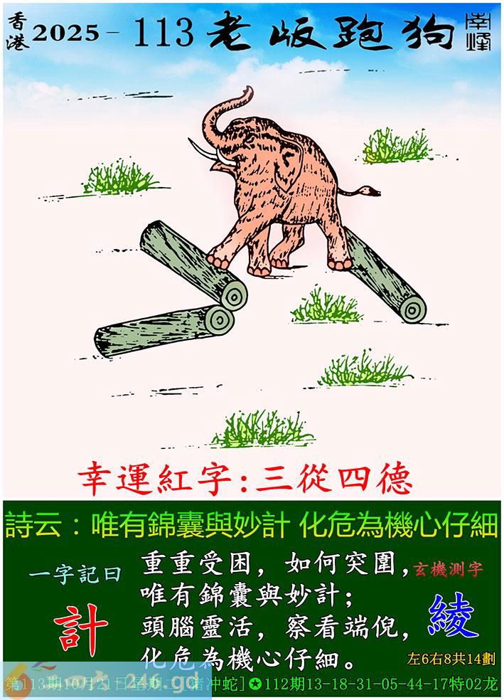 113期老版跑狗一字記之曰:【計】 詩雲:唯有錦囊與妙計,化危為機心仔細。