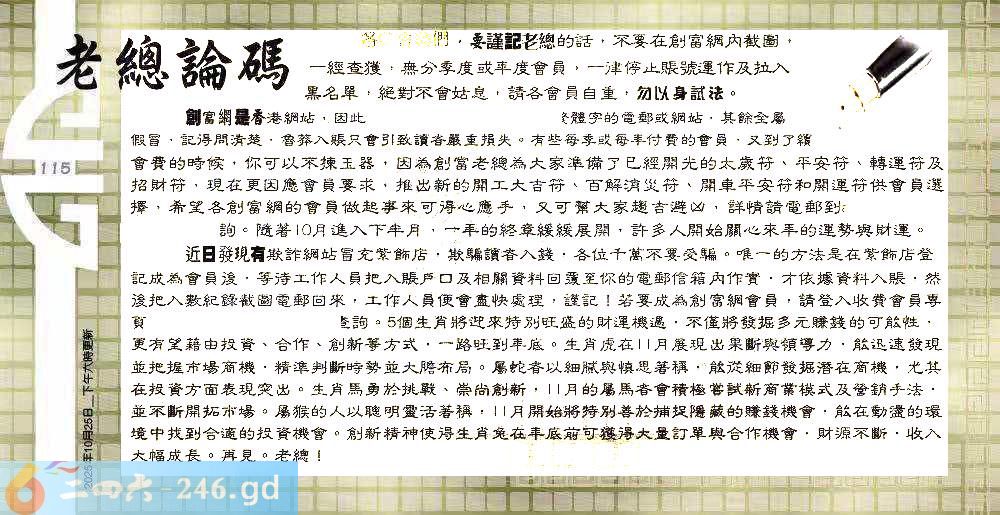 115期:六合皇金句/老总论码/萧公子/林大师/五行夺码/老总信箱截图