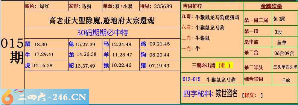 015期:30码期期必中特