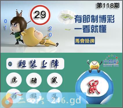 118期正版彩图挂:29爆:鼠挂牌成语:轻装上阵挂牌出肖:虎猪鼠鸡猴马