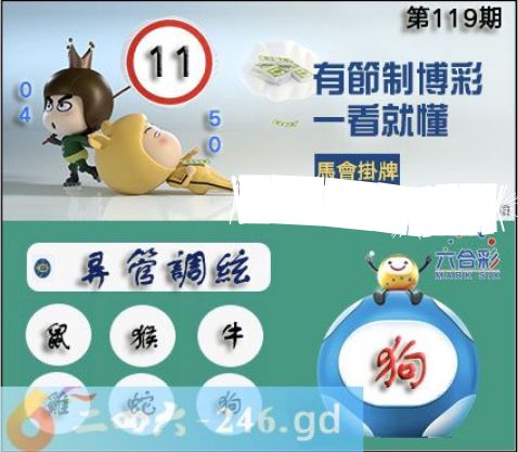 2025119期2025年119期正版彩图挂:11 爆:狗 挂牌成语:昇管調統 挂牌出肖:鼠猴牛鸡蛇狗