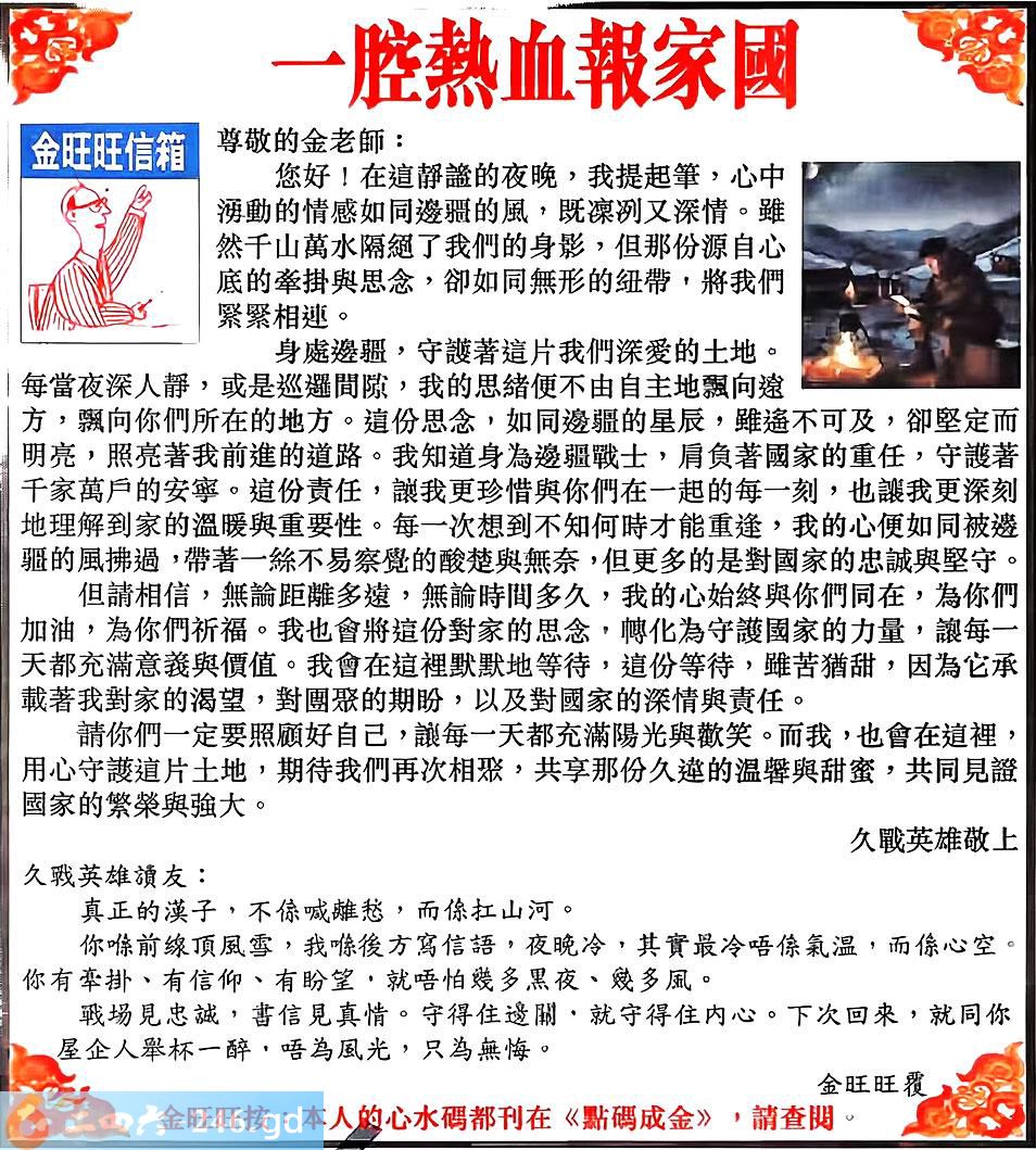 124期:金旺旺信箱彩民推荐→→《一腔熱血報家國》