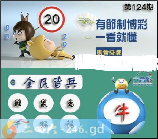 2025年124期正版彩图挂:20 爆:牛 挂牌成语:全民皆兵 挂牌出肖:鸡鼠兔牛猴龙