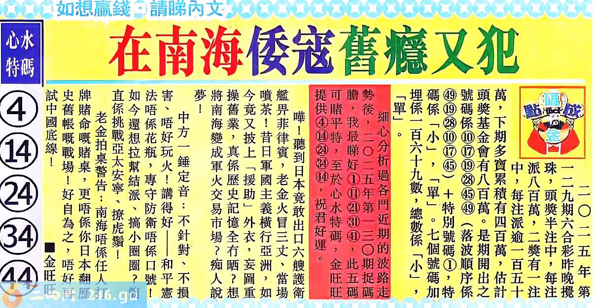 2025130期130期:金旺旺信箱彩民推荐→→《更新中》