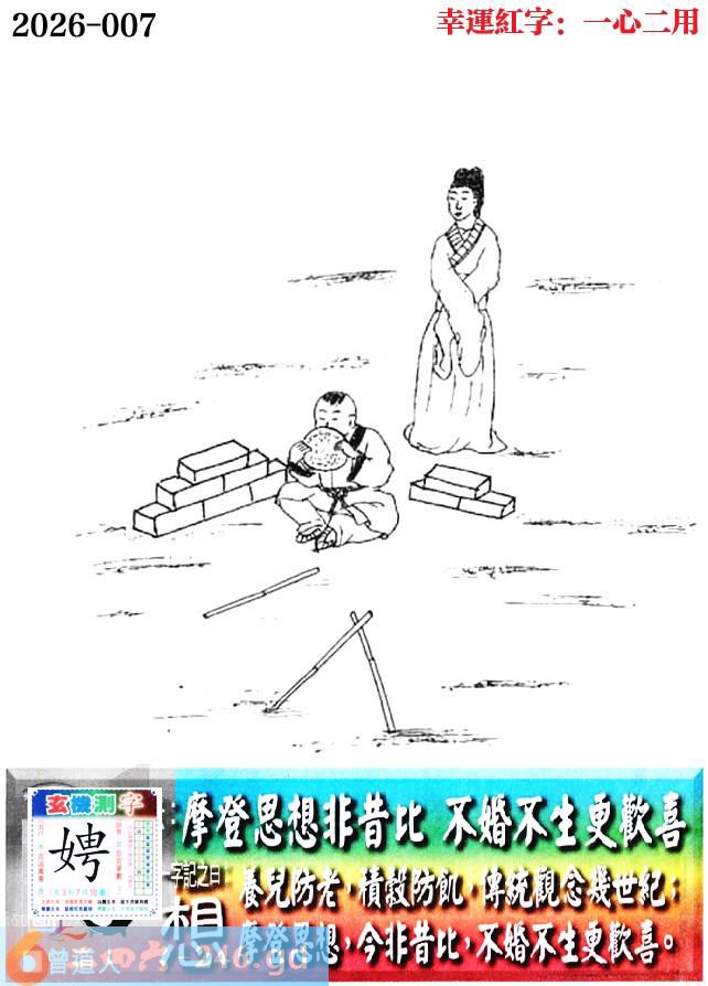 007期老版跑狗一字記之曰:【想】 詩雲:摩登思想非昔比,不婚不生更歡喜。