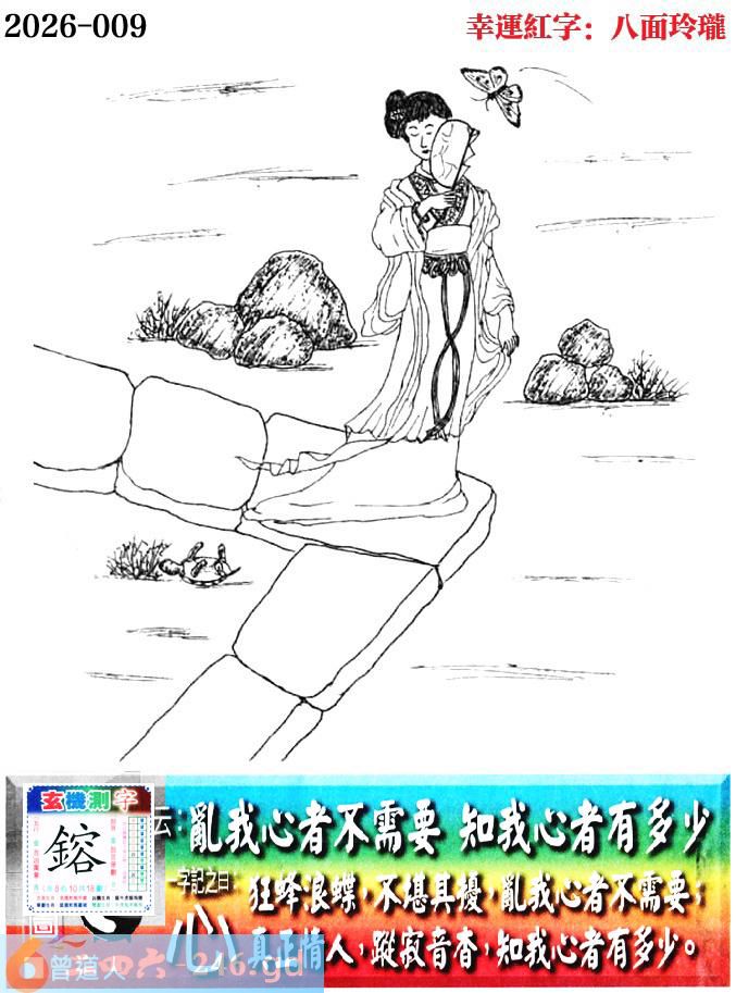 009期老版跑狗一字記之曰:【心】 詩雲:亂我心者不需要,知我心者有多少。 狂蜂浪蝶,不堪其擾,亂我心者不需要; 真正情人,蹤寂音杳,知我心者有多少。 玄機測字:《鎔》
