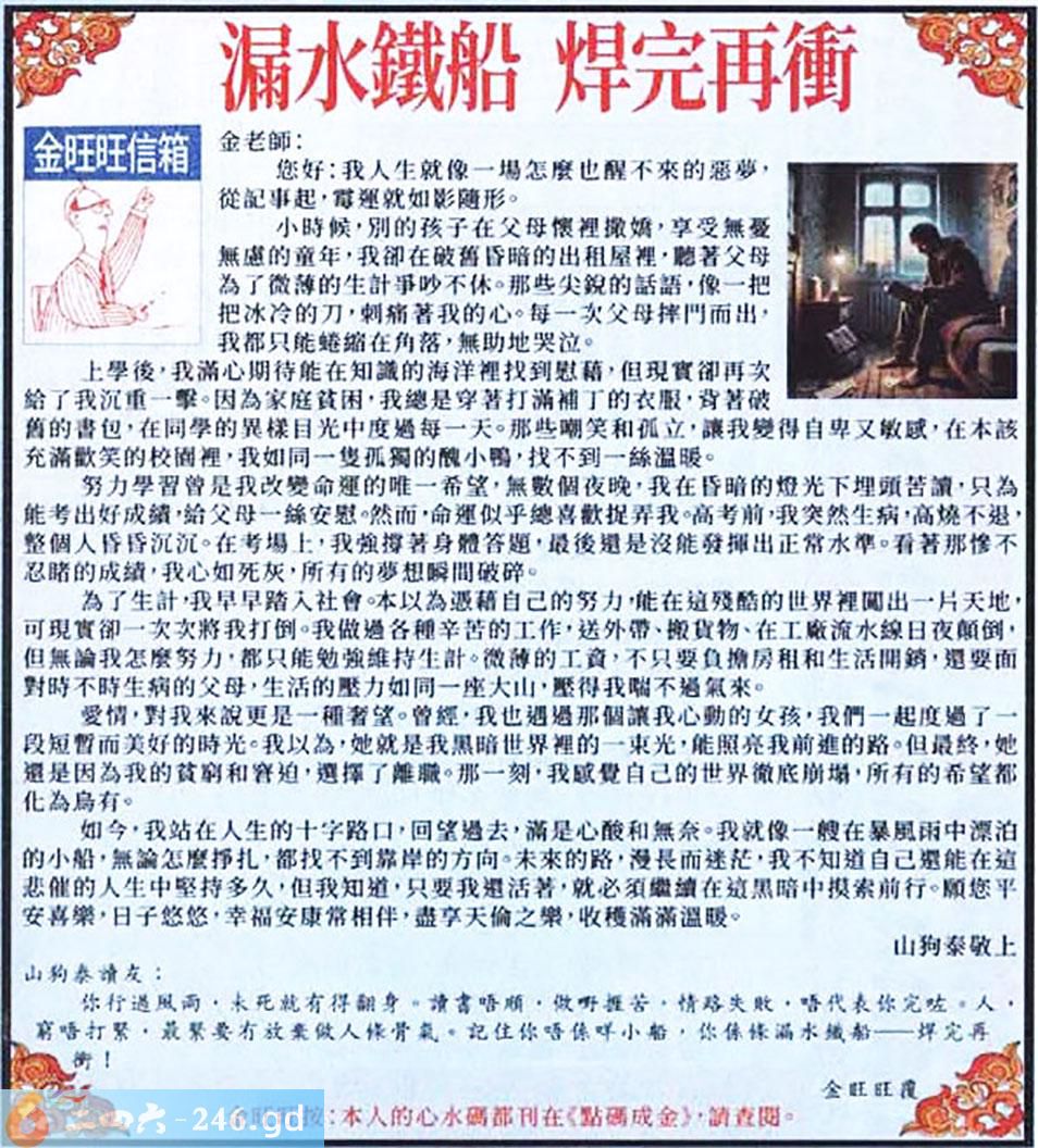 010期:金旺旺信箱彩民推荐→→《漏水鐵船 焊完再衝》