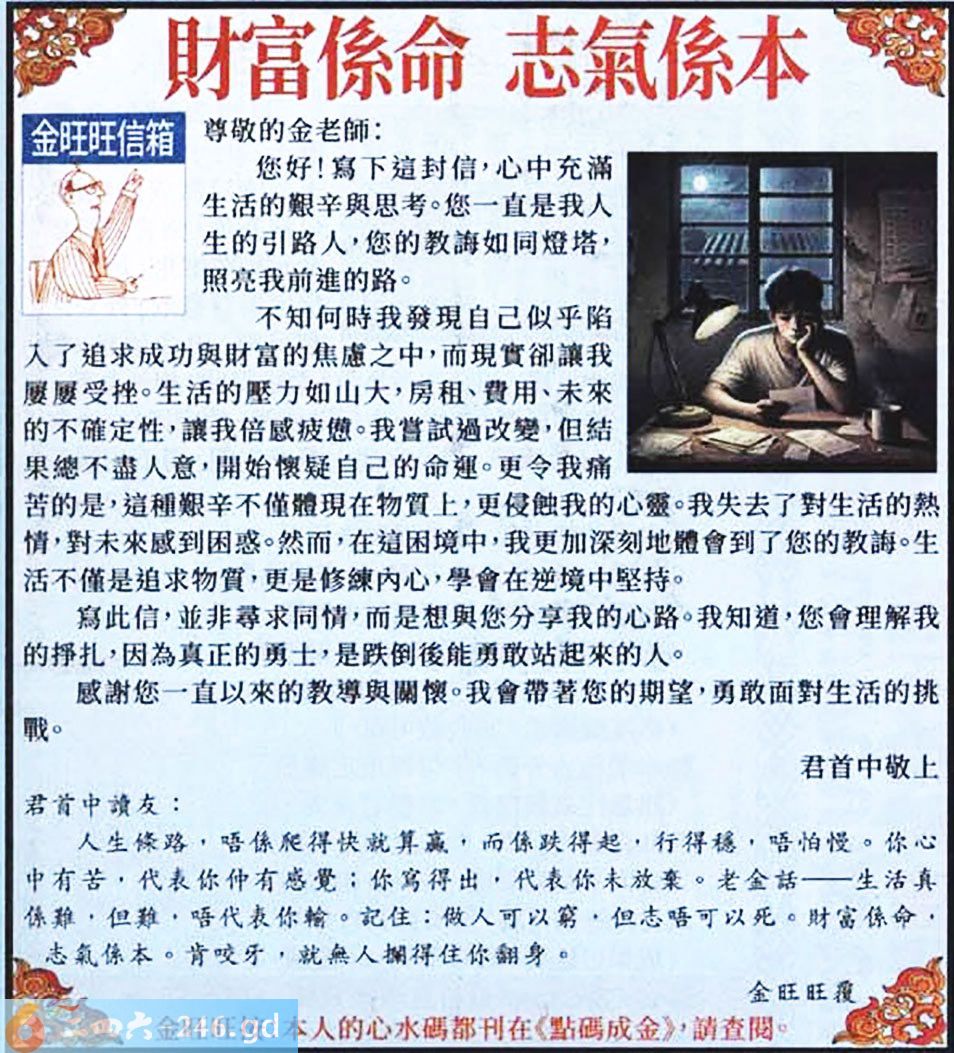 2025015期015期:金旺旺信箱彩民推荐→→《財富係命 志氣係本》