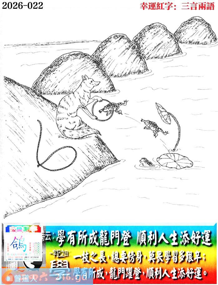 022期老版跑狗一字記之曰:【學】 詩雲:學有所成龍門登,順利人生添好運。 一技之長,總要傍身,莫畏學習多艱辛; 學有所成,龍門躍登,順利人生添好運。 爱学习、走正道、有一技之长的普通老百姓吗? 非贵族龙凤、非苦力牛马、非不学无术的鼠猴猪? 剩下的会有机会吗?