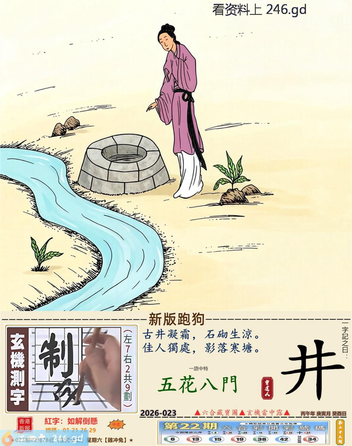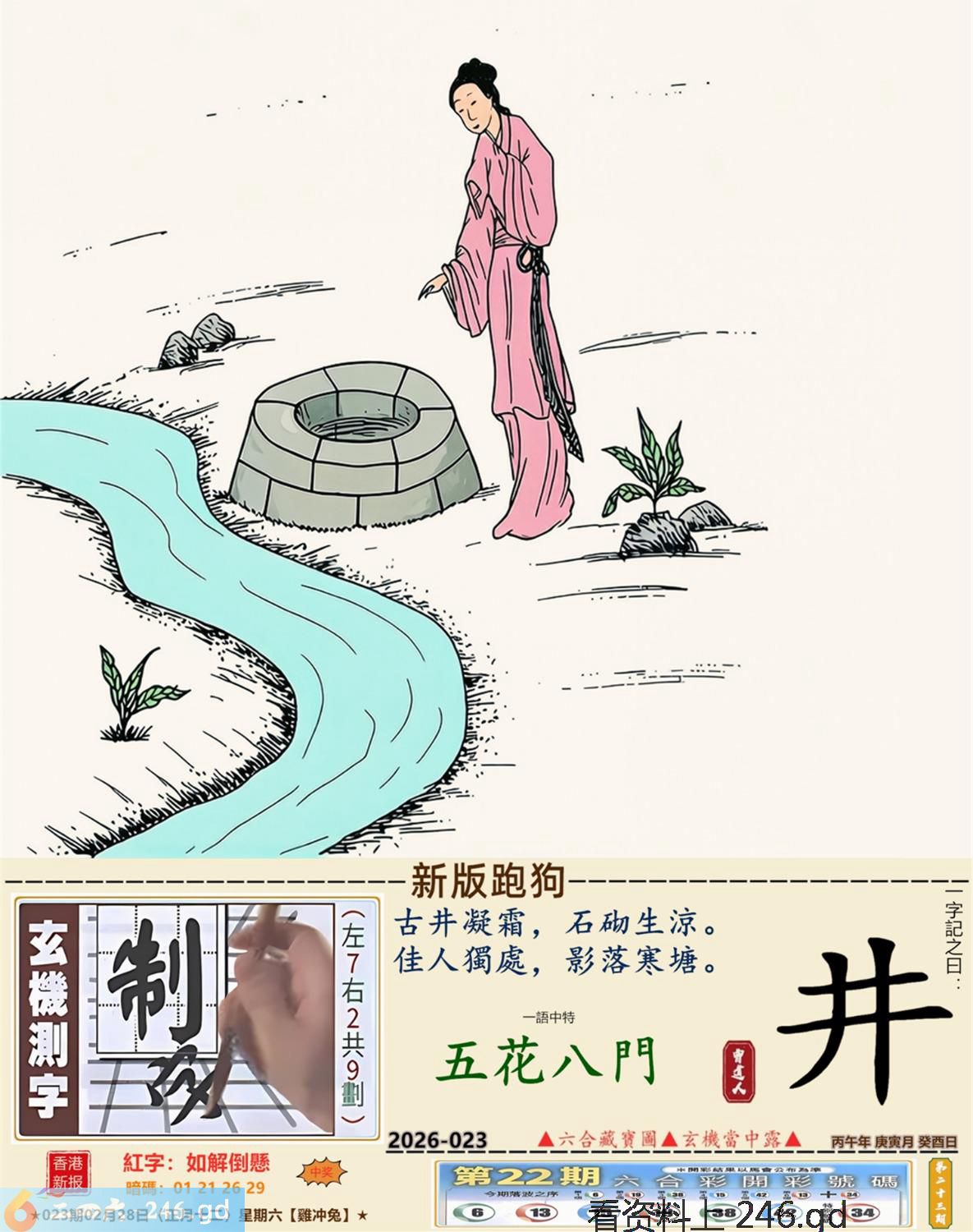 本帖最后由小歪于2026-2-2722:20编辑 2026年2月28日023期兔(丁卯)(剑锋金) 023期:老版跑狗玄機一字記之曰:【賢】 詩云:賢助常在你身後維繫家庭需奮鬥 義重情深,長伴左右,賢助常在你身後; 家有嬌妻,美不勝收,維繫家庭需奮鬥。 玄機測字:《活》 密圖詩:十次買一有時中 《記》:一日文章拜布衣 特碼大小單雙句:方圓十里無客棧 今期必中:張飛 023期:特碼歇后語 会计拿逄盘-----算啦 023期正版四字梅花诗:繁文缛节。 023期火车头:烧伤兔。诗:牛死羊伤,家喻户晓最忠心。 023期香港第一手欲钱料:红?。 023期曾道人说:“四分五裂?” 023期另版四字梅花诗:格格出嫁。 023期香港第一手欲钱料:欲钱找富贵不淫的动物。 023期曾道人说:“为什么儿童喜欢看动画片”? 023期:二字经:蓝红。 023期:太平间是特码 023期:智力金壤; 023期:信箱紅字:【如解倒懸】 023期:【暗碼:01-21-26-29】 023期:一語中特:【五花八門】 發財玄機圖:適應快速後腿强健圖中明兔紅藍 023期:藏寳圖 新:不知玉露凉风急 老:疏钟已应晚来风 禁:虎禁:7尾玄机字《韩》 2026年023期【生活幽默】版 〖營救〗 在一次事故中,一名男子被埋進了一個兩米深的缝隙裹,除了頭部能活動外,手脚都動彈不得,營救人員不知怎才能安全地把他救上來。這時,那男子説:"衹要抓住我的一衹耳朵,就能把我拉出來。"營救人員無計可施,衹好照做了,男子果然奇迹般地被救了上來。現場記者問那男子:"你的耳朵怎會有那大的力量?"男子苦笑着説:"鍛煉出來的。平時在家裹,老婆一不顺心,就扯我的耳朵。"