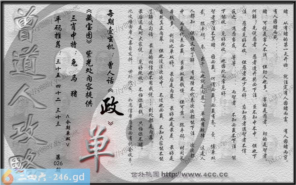 026期藏寶圖 新:谁家合榭当年筑 老:此日陆军同驻马 禁:牛 禁:0尾 玄機字:《政》