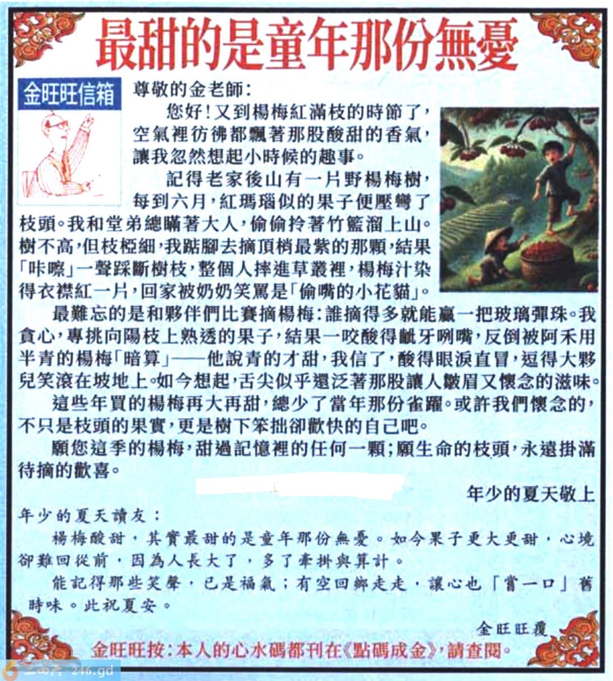 042期:金旺旺信箱彩民推荐→→《最甜的是童年那份無憂》