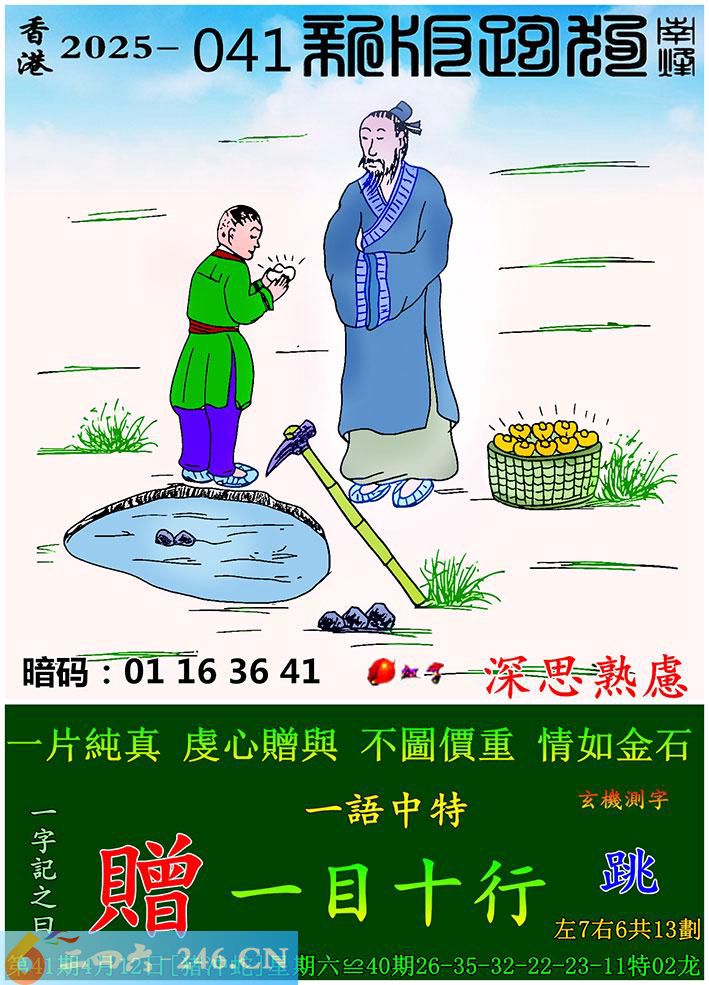 041期跑狗一字記之曰:【贈】 一片純真,虔心贈與。 不圖價重,情如金石。 玄機測字:《跳》 一語中特:一目十行